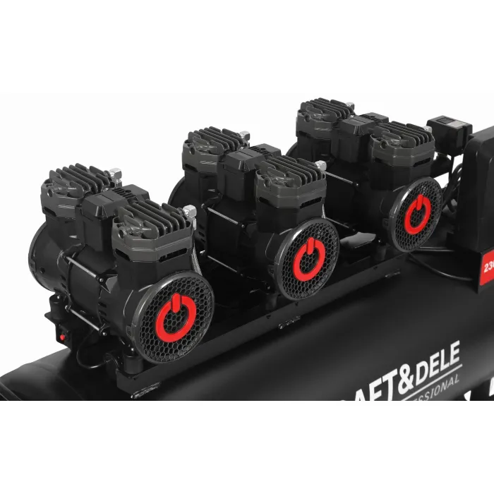 Три мощни мотора с мощност 2200 W гарантират висока ефективност, а тихата работа при 75 dB осигурява комфортна употреба. Система за защита на компресора, дренажен вентил и водоуловител с редуктор на налягането предпазват устройството от претоварване и влага, удължавайки живота му. Мощен, безмаслен въздушен компресор с голям капацитет от 200 литра, предназначен за интензивна употреба в работилници, сервизни центрове, бояджийски цехове и строителни площадки. Неговата производителност и здрава конструкция осигуряват надеждна работа при всякакви условия.