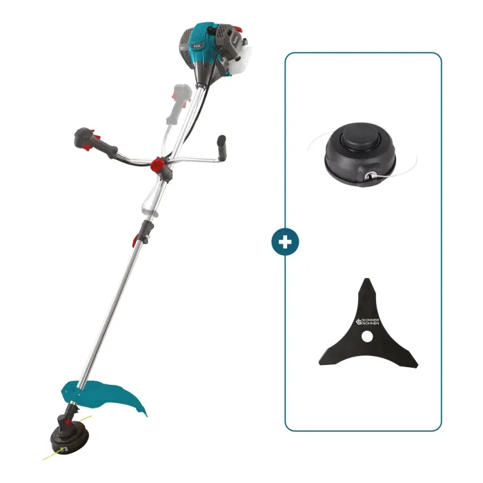 Въртящият се държач за дръжката на велосипеда позволява бързи настройки без инструменти с централен винт, а завъртането на 90° опростява транспортирането и съхранението. Ергономичната дръжка на велосипеда осигурява удобно управление и минимизира умората. Фиксиращите скоби здраво задържат кабела на място, предотвратявайки повреда по време на употреба и транспорт. Круиз контролът поддържа стабилна скорост на двигателя за продължителни периоди, което прави работата още по-комфортна. Тази бензинова коса от немската марка Könner & Söhnen® се отличава с уникален дизайн, който комбинира защитата на корпуса на съединителя и цилиндъра за подобрено охлаждане на двигателя и защита от замърсявания. Системата E-Start осигурява лесно стартиране, а CDI запалването осигурява стабилна работа.