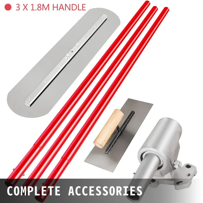 Комплектът за заглаждане на бетон е оборудван с мистрия за довършителни работи, скоба, три дръжки (всяка дръжка с дължина 1,8 м), четири винта и малка мистрия. Може да се използва за всички видове довършителни работи по бетон.