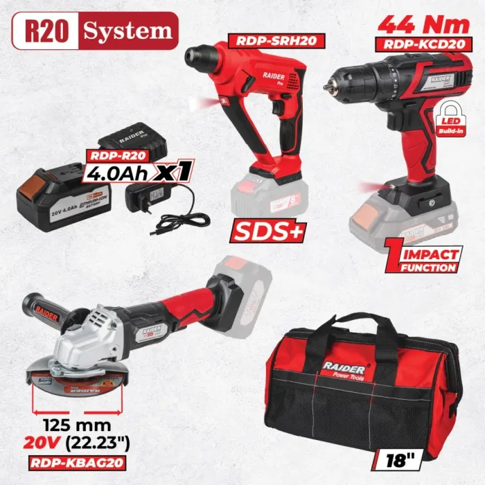 Комплект акумулаторни машини Raider RDP-BXS13 R20/ 20V/ 4Ah