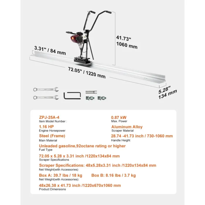 С регулируема дръжка и лек дизайн, тази мощна бетонна мистрия осигурява гладко, изпипано бетонно покритие, като същевременно повишава комфорта и производителността. 1,2 м скрепер за замазка: 1,2 м алуминиев скрепер се справя с лекота с различни работни площадки. Неговият 7 мм дебел, устойчив на износване и ръжда дизайн осигурява издръжливост и многостранна употреба.