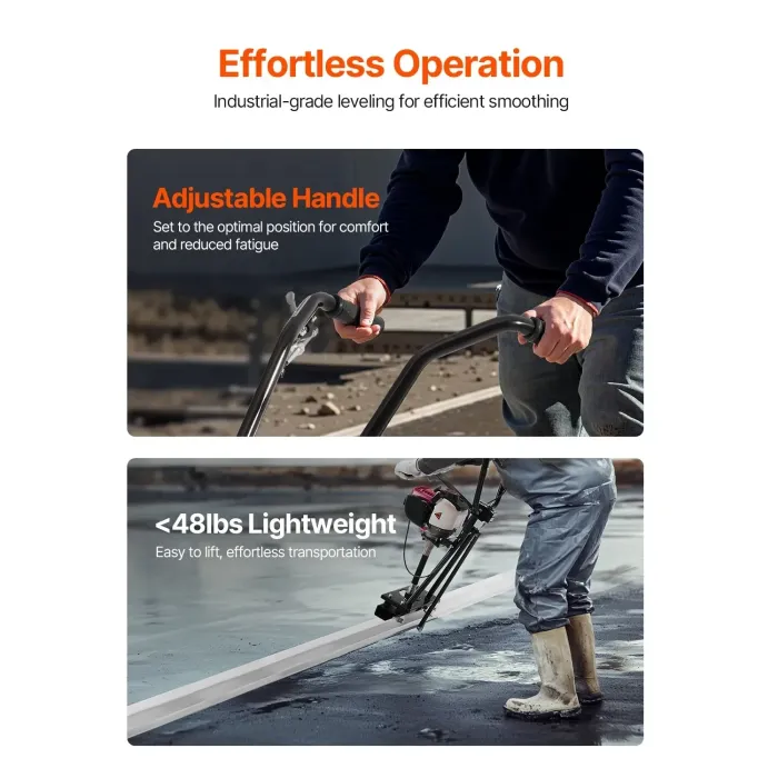 Оборудван с първокласен двигател с мощност 1.6 к.с., този бетоноизравнител работи с безоловен бензин 92# или по-висок, осигурявайки 4 пъти по-бърза производителност за по-бърза, по-стабилна и дълготрайна ефективност.