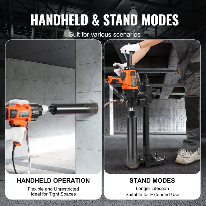 Ръчният режим на бормашината за ядкови пробиви е идеален за задачи, изискващи гъвкава мобилност и прецизен контрол, като например домашни ремонти и малки проекти за пробиване, което прави работата по-плавна и удобна. Режимът на работа на стойка осигурява стабилна опора за по-големи проекти и задачи за пробиване с висока стабилност.