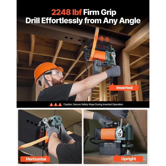 Магнитната бормашина е изработена с дебела, високочиста желязна основа за магнитна сила до 2248 lbf / 10000 N. Тя остава здраво на мястото си дори върху вертикални или наклонени метални повърхности, осигурявайки стабилно и сигурно пробиване.