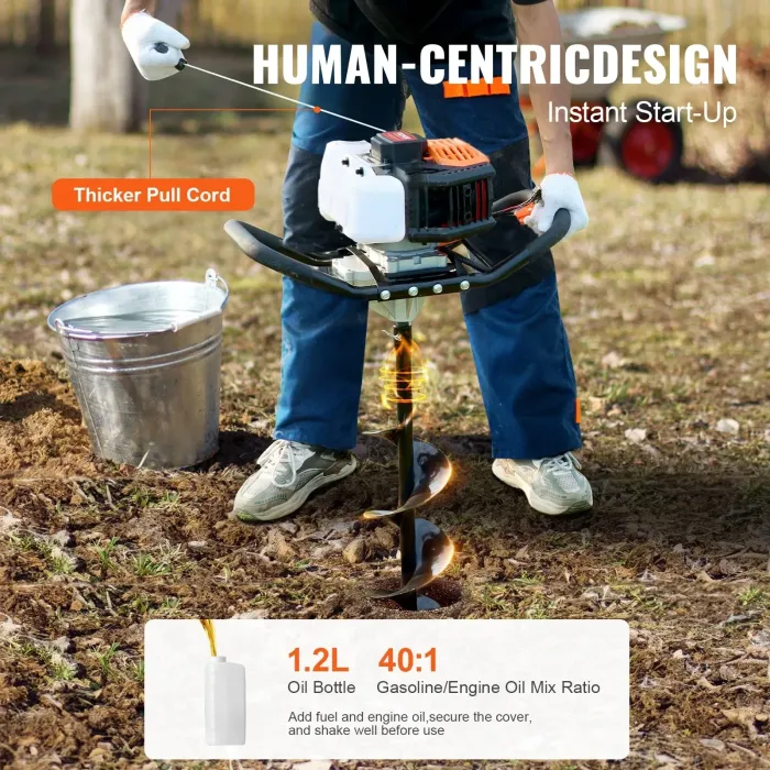 Оборудван с двигател с обем 52 куб. см, мощността е до 1450 W, скоростта на въртене може да достигне 9500 оборота в минута, а свредлото се върти до 32 оборота в минута. В комбинация със силната мощност на двигателя, той може да завърши задачата за пробиване бързо и лесно да се справи с всякакви почвени и теренни условия, което е подходящо за тежки работни условия.