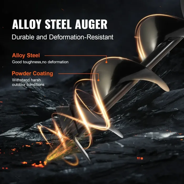 Свредлото е изработено от легирана стомана с прахово покритие върху металната повърхност, което е устойчиво на корозия и износване и намалява честотата на поддръжка и подмяна. За лесна употреба ви предлагаме свредла и удължителни пръти с диаметър 6" и 10". Големи отвори за охлаждане на двигателя, за да поддържа двигателя работещ дълго време.