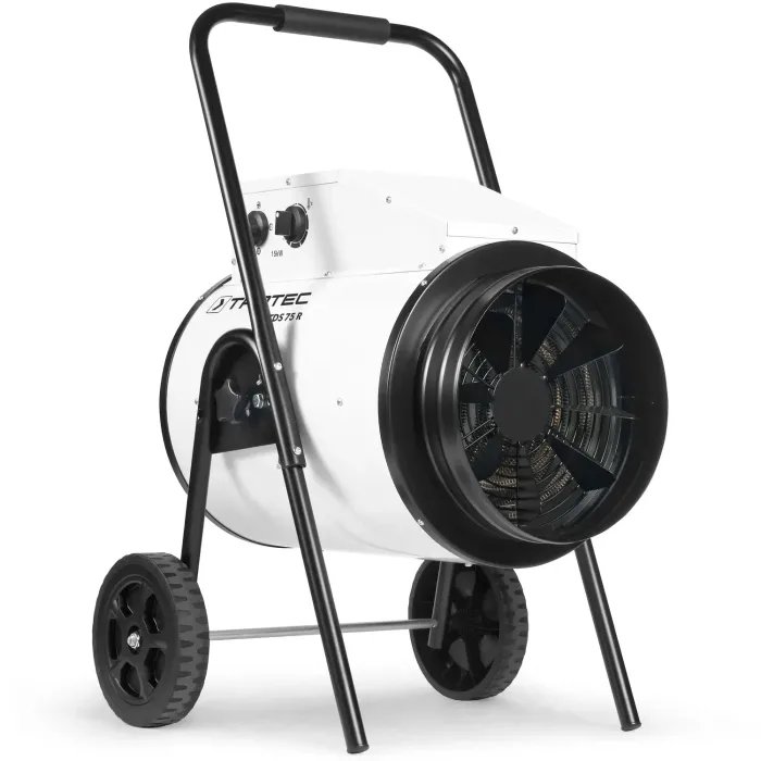 Благодарение на регулируемата на две степени отоплителна мощност до 15 kW и големия обем на рециркулиращ въздух, електрическият пистолет за горещ въздух TDS 75 R е еднакво идеален за отопление в по-големи цехове, складове, оранжерии, строителни площадки или производствени среди на търговски и промишлени предприятия.