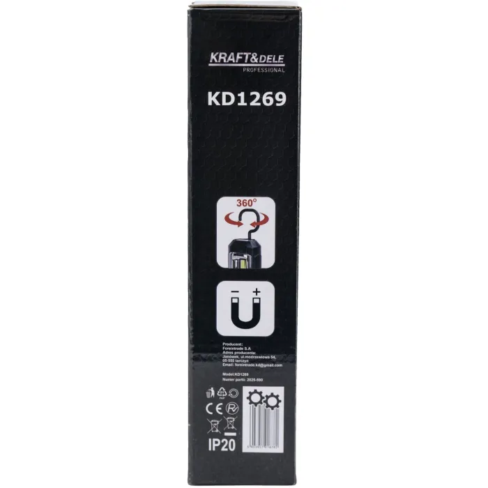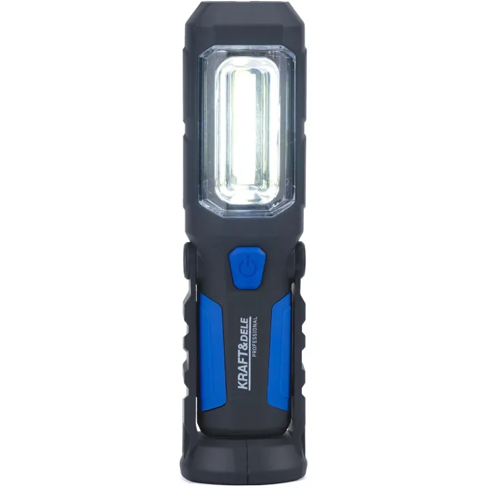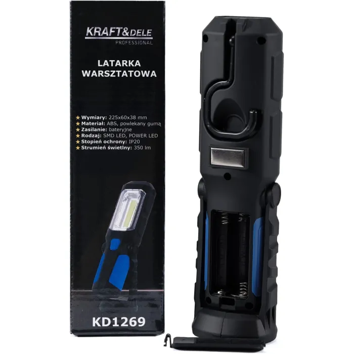 Благодарение на използването на ефективни SMD светодиоди и POWER светодиоди, устройството генерира силен, равномерен лъч от 350 лумена, осигуряващ отлична видимост дори в тъмни и слабо осветени пространства. Издръжлив и практичен фенер за работилница от KRAFT&DELE, предназначен за ежедневна употреба в гаражи, работилници, строителни площадки и за ремонти на труднодостъпни места.