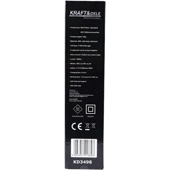 Работна LED лампа KraftDele KD3498/ 2х10W