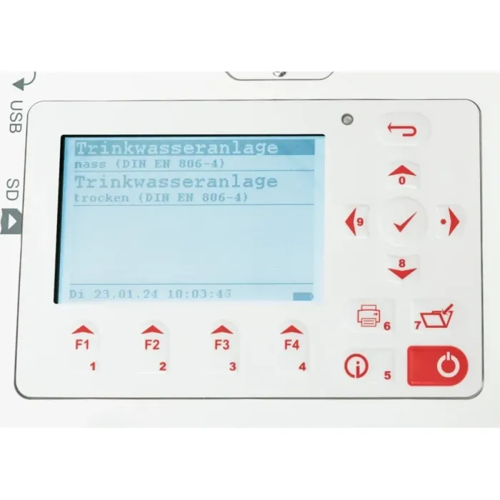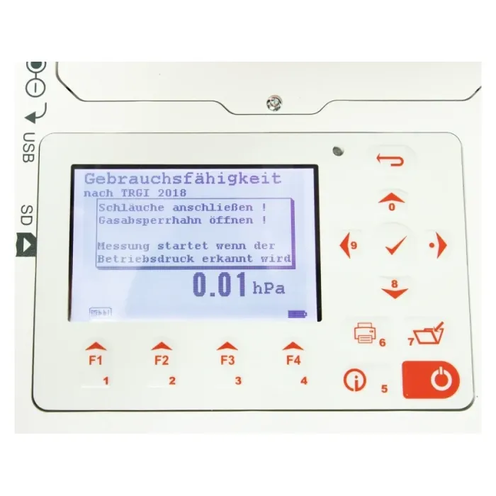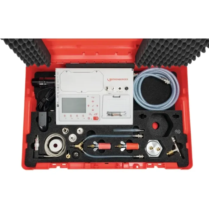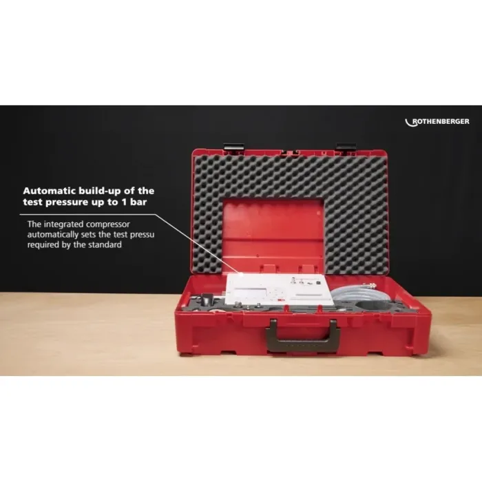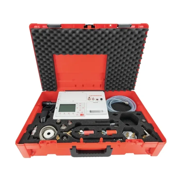 Професионалния уред за откриване на течове е с обхват на тестване 0-20 бара и дължина на маркуча за изпитване 2.8 м. Оборудван е с вътрешен компресор за повишаване на налягането до 1.5 бара и вграден принтер за директно разпечатване на резултатите от измерването. Устройството е универсално решение за изпитване на налягане и течове в тръби за газ, втечнен природен газ, вода и канализация, като предоставя автоматични тестови последователности. Доставя се в куфар заедно с маркуч за изпитване, Y-образен маркуч, връзка за горелка, спирателен кран, адаптери, пломба, SD карта за записване на данни, хартия за принтер и др.