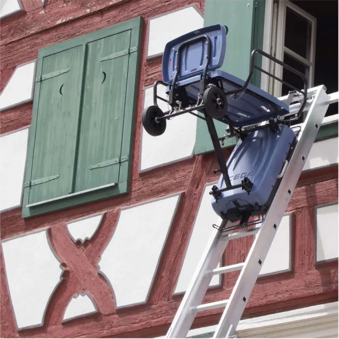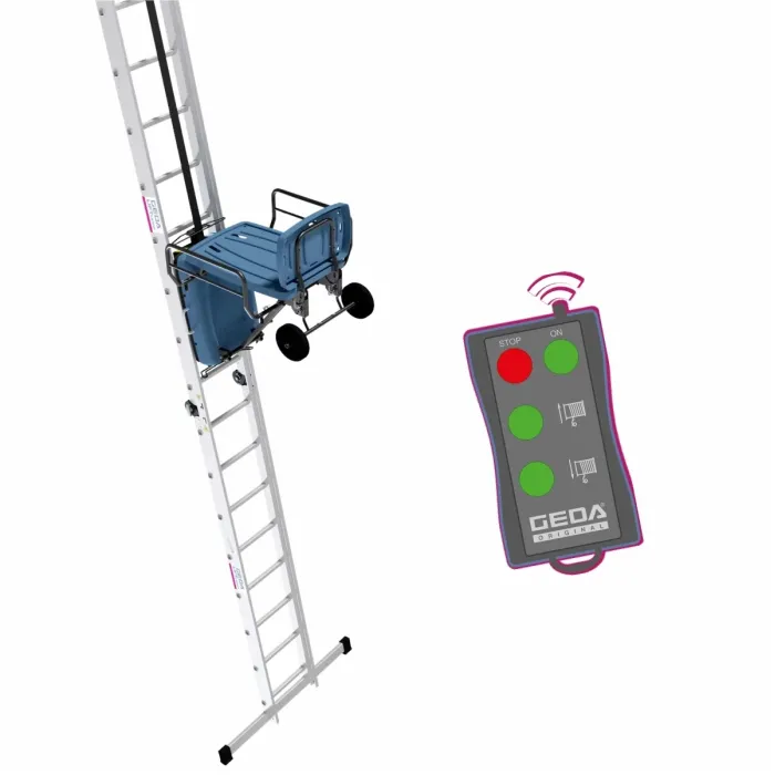 Асансьорът може да бъде сглобен от един човек за по-малко от пет минути. Компактната иновация на GEDA използва мощна литиево-йонна батерия 24 V/10 Ah и различни платформи за транспортиране на всички видове материали до 120 кг. С натискането на един бутон дистанционното управление привежда уреда в движение от 0 до 15 м/мин. Всички височини от 2,2 m до 10 m могат лесно да бъдат достигнати с интелигентна комбинация от стълба и/или опорна стълба с комплект за свързване на стълба.