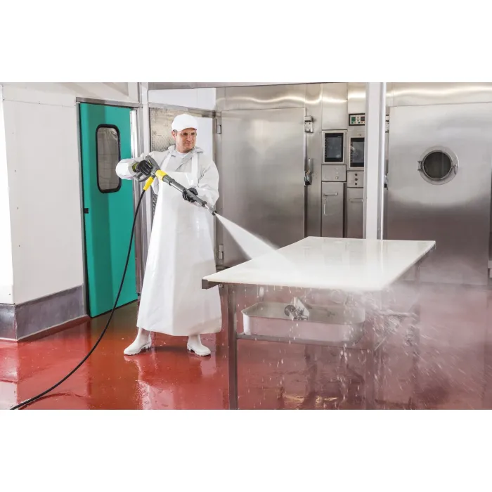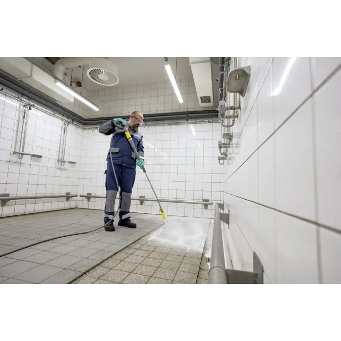 Тази стационарна водоструйка без подгряване на водата впечатлява с безпроблемната си работа, дебит от 1 000 l/h, налягане от 190 bar и температура на входа до 85 °C. Помпата е защитена от голям воден филтър. Не само монтажът, но и експлоатацията и поддръжката са лесни и удобни за потребителя. Електронният мониторинг и индикаторът за грешки гарантират високо ниво на безопасност при работа. Благодарение на 4-полюсния бавнооборотен мотор машината има дълъг експлоатационен живот, а помпата с колянов вал с висококачествена месингова цилиндрова глава и рамката и корпусът от неръждаема стомана правят машината издръжлива на износване. Водоструйката има резервоар за вода със защита от работа на сухо и защита от котлен камък, като празното ниво на защитата от котлен камък се показва на дисплея. Препаратът може да се засмуква и дозира чрез клапан, като тук е предвиден и индикатор за празно състояние. Доставя се без аксесоари, които могат да бъдат избрани във всеки момент на употреба: манометър, брояч на работните часове, вход за втори препарат, автоматично освобождаване на налягането и различни дистанционни управления.