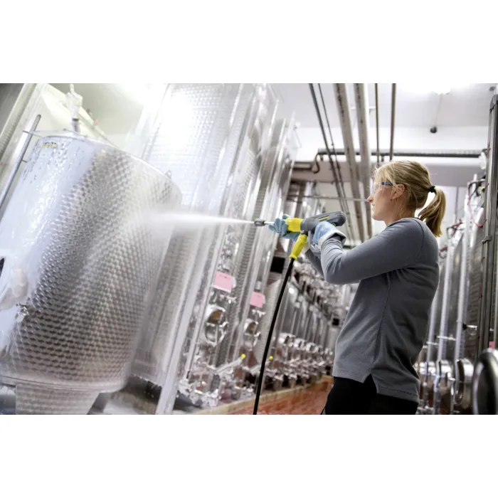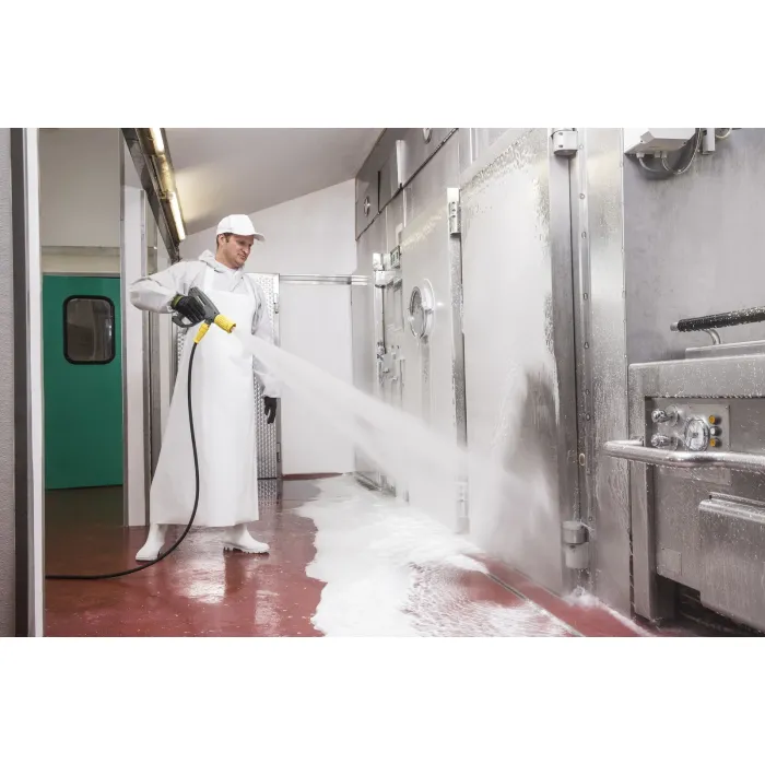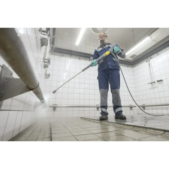 Монтажът, експлоатацията и поддръжката са проектирани с оглед на удобството на потребителя. За да се осигури високо ниво на безопасност при работа, машината е снабдена с електронно наблюдение. Продуктът се допълва от широка гама аксесоари, които могат да бъдат избрани във всеки момент на употреба: манометър, брояч на работните часове, вход за втори почистващ препарат, автоматично освобождаване на налягането и дистанционно управление. Водоструйката има резервоар за вода със защита от работа на сухо и защита от котлен камък, като за защитата от котлен камък се показва празното ниво. Препаратът може да се засмуква и дозира чрез клапан, като тук също е предвиден индикатор за празно състояние. Четириполюсният бавнооборотен мотор гарантира дълъг експлоатационен живот. Стационарната ни водоструйка без подгряване на водата е мощен избор с дебит 1700 l/h и налягане 120 bar, което я прави идеална за продължителна употреба в тежки работни условия, например в хранително-вкусовата промишленост. Възможно е температурата на водата на входа да достигне 85 °C. Както помпата с колянов вал с месингова цилиндрова глава, така и рамката и корпусът от неръждаема стомана гарантират здрава конструкция.