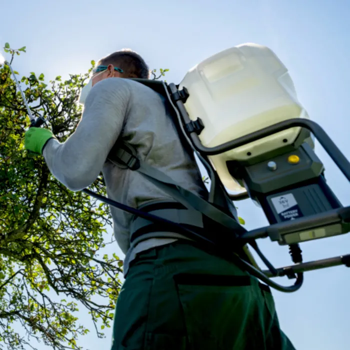 Удобната система за носене, благодарение на допълнително подплатените презрамки и коланите за гърдите и бедрата, осигурява изключително ергономична работа без умора. Мощна, сменяема батерия не е включена, но се предлага отделно с различен капацитет, за да отговаря на индивидуалните нужди – а ниската ѝ консумация на енергия позволява часове непрекъсната употреба. Висококачествените материали, като например пръскащата тръба от неръждаема стомана с две различни дюзи и здравата конструкция със стоманена рамка, осигуряват дълъг експлоатационен живот. Забележка: При използване на дезинфектанти и продукти за растителна защита, трябва стриктно да се спазват съответните инструкции на производителя. Независимо дали става въпрос за градинарство и озеленяване, или за селско стопанство за отглеждане на зеленчуци, плодове или вино: Нашата пръскачка под налягане SPB 15/36 Bp е многофункционална, лесна за работа и особено мощна с работно налягане до 6 бара. Оборудвана с голям резервоар от 15 литра, тя е еднакво подходяща за напояване, прилагане на продукти за растителна защита, почистване на повърхности и дори премахване на тапети.