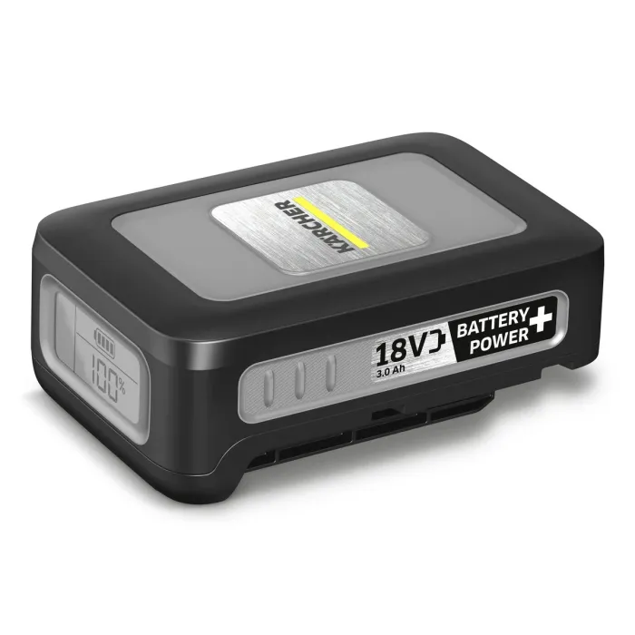 Батерията поддържа стабилен термичен баланс, осигурявайки максимална производителност винаги на разположение. Иновативната технология в реално време позволява на потребителите да виждат точна информация за оставащото време на работа, времето за зареждане и състоянието на зареждане по всяко време чрез ясен LCD дисплей. Разработена за устройства на Kärcher, използващи 18-волтовата платформа за батерии, 18-волтовата литиево-йонна батерия Battery Power+ се отличава с капацитет от 3 Ah, изключителна производителност и набор от функции за ефективна защита на клетките. Здравият корпус, с висока устойчивост на удар и защита от водна струя IPX5, предотвратява външни повреди от удари и вода. Вътре, надеждни системи като ефективно управление на температурата, интегриран мониторинг на напрежението и защита от свръхток предотвратяват повреда на клетките от дълбоко разреждане, пренапрежение или прекомерна топлина.