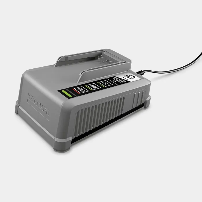 Позволява кратко време за зареждане. Модерен, тънък и компактен дизайн на устройството. Лесен за употреба. Зарежда всички сменяеми батерии 18V Kärcher Battery Power и Kärcher Battery Power+. Високопроизводително бързо зарядно устройство.