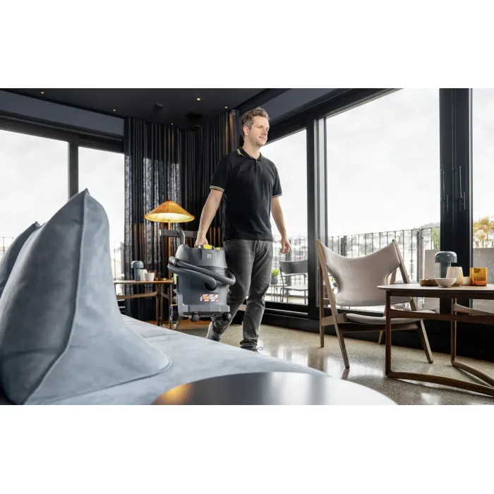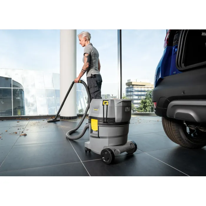 Устройството е проектирано за работа с мощни батерии Kärcher Battery Power+, които, заедно със съответното зарядно устройство, не са включени в комплекта и трябва да се закупят отделно. Батерии позволяват изключително дълго време на работа и са ефективно защитени от външни елементи чрез капак вътре в устройството. Компактните размери и ниското тегло на NT 22/1 Ap Bp улесняват транспортирането и съхранението, позволявайки употреба дори в ограничени пространства и зони с висок трафик. Освен това, това универсално устройство е оборудвано с плосък плисиран филтър, който спестява място, и електронно изключване на водата. Специалният, плосък дизайн на главата на прахосмукачката позволява и поставянето на инструменти или кутии. Проектирана за засмукване на течности, едри замърсявания и фин прах, нашата безжична прахосмукачка за мокро/сухо почистване NT 22/1 Ap Bp впечатлява с високата си всмукателна мощност, където няма външно захранване.