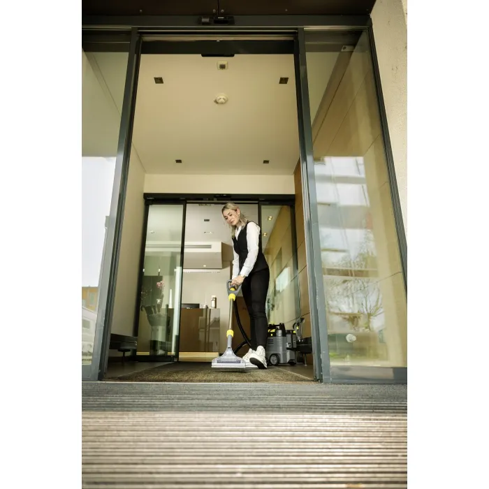 Въпреки мощността си, тази Puzzi е изключително тиха, което я прави идеална за употреба в обществени помещения: плюс ергономично проектираната дръжка означава, че може лесно да се носи с една ръка. За най-добри резултати от почистването, почистващият разтвор се нагнетява и се впръсква дълбоко в текстилните влакна, след което се засмуква обратно заедно с разхлабената мръсотия. Стандартно се доставя: Дюза за тапицерия, маркуч за прахосмукачка, дюза за под, тръба за екстракция, контейнер 2 в 1 за прясна и мръсна вода, вградено място за съхранение на аксесоари и много други. При поръчка на тази версия на машината, моля, имайте предвид, че мощната 36 V батерия Kärcher Battery Power+ и съответното бързо зарядно устройство трябва да се поръчат отделно. Единствената по рода си в света, предлагаща изключително здрав дизайн и безжична гъвкавост: Нашата безжична екстракционна почистваща машина Puzzi 9/1 Bp Adv Pack. Като единствената професионална машина за екстракция с батерии на пазара, тази Puzzi винаги впечатлява с изключителната си производителност и максимална свобода на движение при дълбоко почистване на тапицерии, килими и други текстилни повърхности във всяка индустрия, независимо дали става въпрос за хотели или хотелиерство, почистване на превозни средства или сгради.