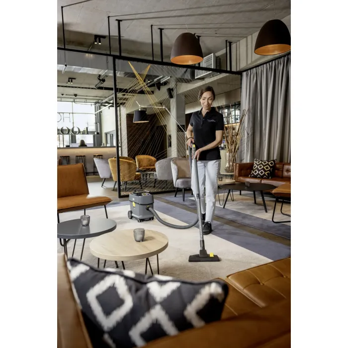 Благодарение на HEPA 14 филтъра, тя отговаря на най-високите стандарти за безопасност дори в хигиенно чувствителни зони, а мощните батерии Kärcher Battery Power+ (36 V) гарантират отлични резултати от почистването. С едва 57 dB(A), прахосмукачката е сравнително тиха, така че може да се използва и в зони, чувствителни към шум. Ресурсите се пестят благодарение на 45% съдържание на рециклирани материали*. T 15/1 Bp Adv HEPA има обем на бункера от 15 литра, компактна е и маневрена. Тя позволява ергономично транспортиране близо до тялото и е оборудвана с дръжка за носене със сгъваема функция. Доставените накрайник за фуги и накрайник за тапицерия могат да се съхраняват директно върху прахосмукачката за лесен достъп. Обемът на доставката включва много аксесоари: смукателен маркуч, антистатично огъване, лека, регулируема телескопична смукателна тръба (алуминий), превключваща се накрайник за под, накрайник за паркет, HEPA 14 филтър. Батерията и бързозарядното устройство трябва да се поръчат отделно.