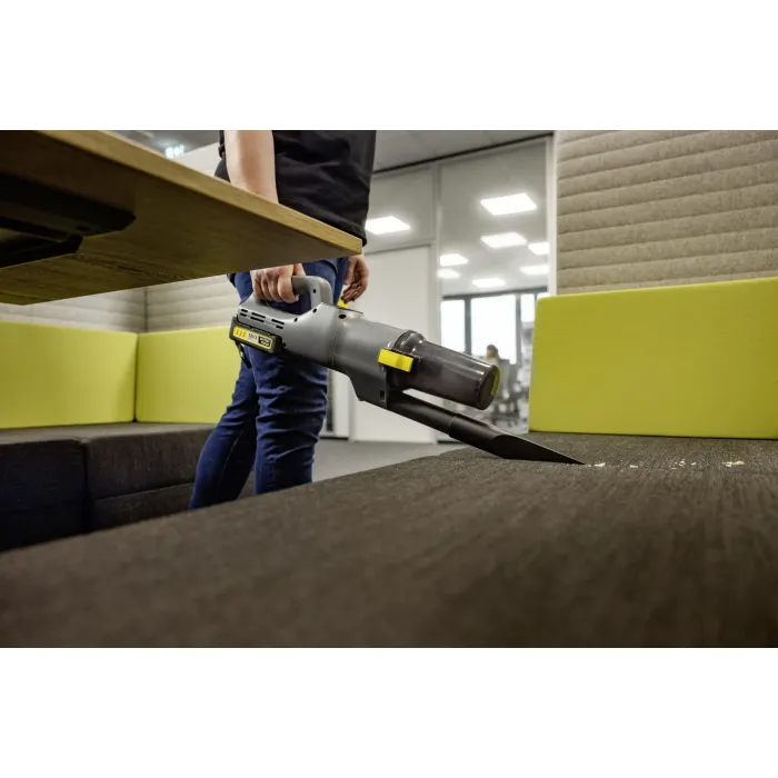 Вграденият HEPA 13 филтър осигурява най-високите стандарти за хигиена. Всмукателната мощност може да се регулира на три степени и само с няколко прости стъпки цилиндричната прахосмукачка се превръща в ръчна прахосмукачка за тапицерии и различни други повърхности. Контейнерът за отпадъци не изисква филтърни торбички, спестява разходи и е устойчив. Може да се изпразва бързо и хигиенично – без директен контакт с мръсотия. С мощните 18-волтови акумулаторни батерии Kärcher, прахосмукачката постига отлични резултати при почистване. Практична скоба гарантира, че доставената дюза за цепнатини е винаги под ръка. Здравата прахосмукачка за сухо почистване LVS 1/1 Bp с батерии предлага отлична всмукателна мощност и ефективно премахва прах и замърсявания. Технологията на циклонния филтър на Kärcher поддържа постоянно висока всмукателна мощност. Безжична, компактна и маневрена, прахосмукачката е идеална за точково почистване в хотелиерството, кетъринга, търговията на дребно и почистването на сгради. Благодарение на неограничената си свобода на движение, тя е перфектна и за почистване на стълби.