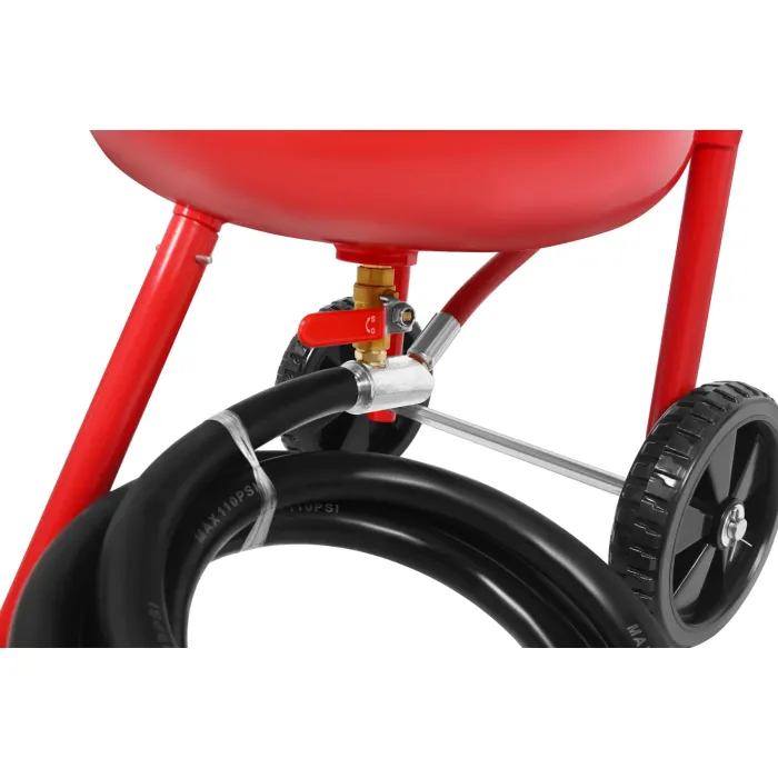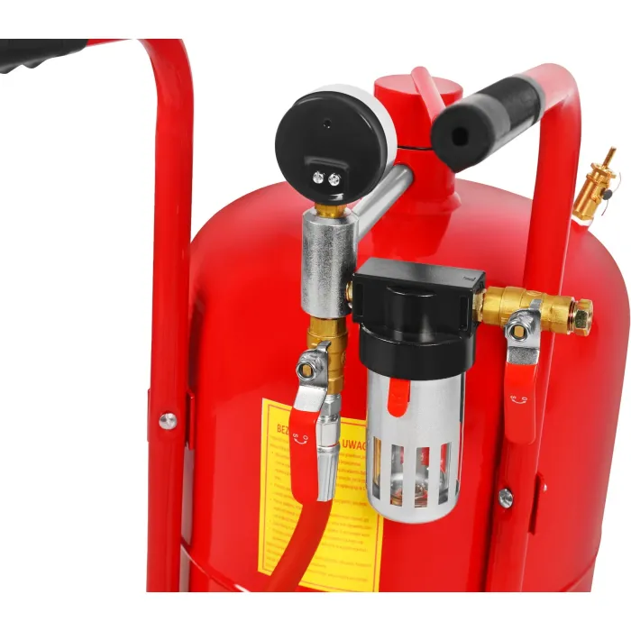Устройството е подходящо както за работилници, така и за професионална употреба. Големите транспортни колела улесняват преместването на пясъкоструйната машина, а възможността за работа с различни абразиви, от корунд до сода и стъклени перли, увеличава многофункционалността на оборудването. Здрава и ефикасна 38-литрова сифонна пясъкоструйка, предназначена за взискателни почистващи и ремонтни дейности. Оборудвана с голям, лесен за отчитане манометър и здрава дръжка, тя осигурява комфорт и прецизност по време на работа.