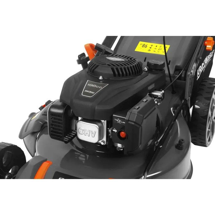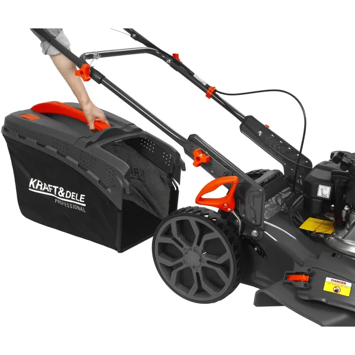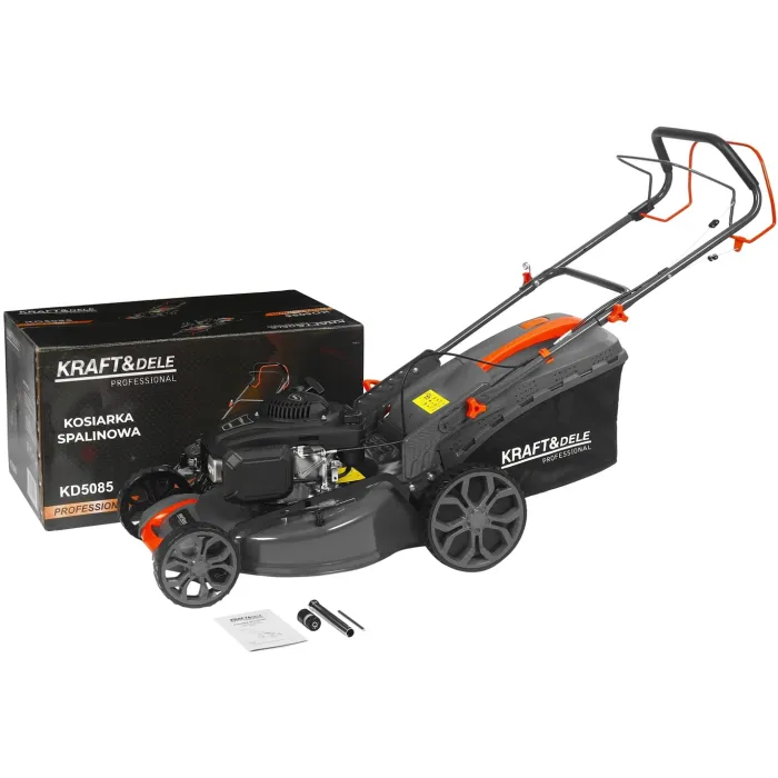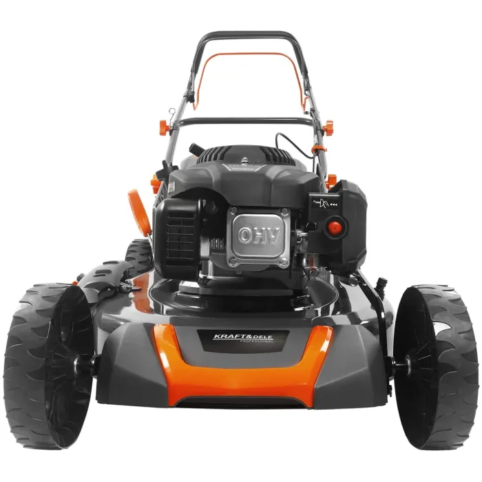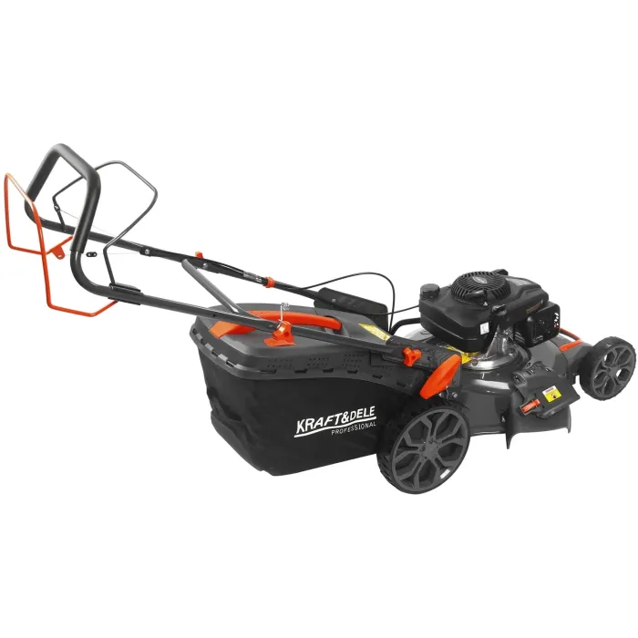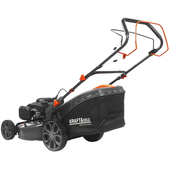 Професионална самоходна бензинова косачка за трева от KRAFT&DELE, проектирана за ефективно косене както на малки, така и на големи площи с тревни площи. Благодарение на мощния си 196-кубиков двигател и ширина на косене от 510 мм, машината гарантира бързо и прецизно косене, като същевременно поддържа висока производителност.