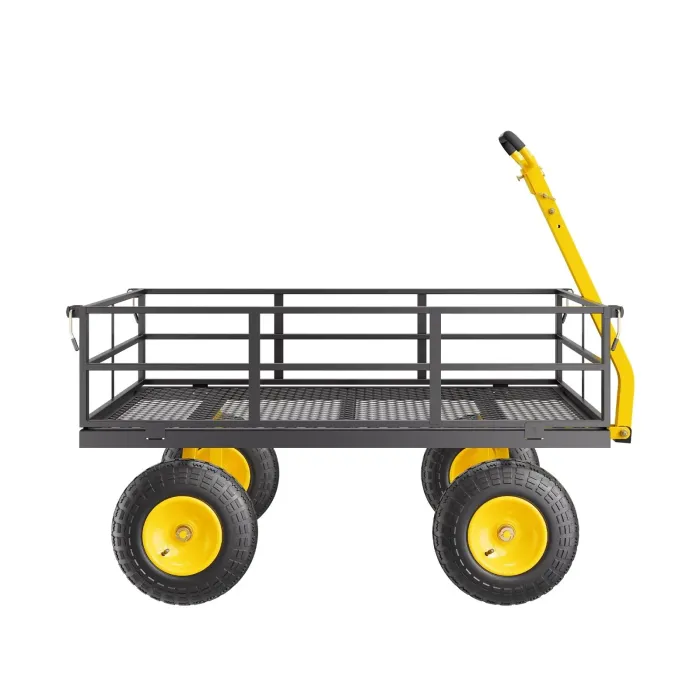 Тази градинска количка е проектирана да превозва тежки товари без усилие. Независимо дали местите почва, камъни или тежки инструменти, впечатляващият ѝ капацитет от 1200 фунта елиминира многократните пътувания, което прави задачите ви на открито по-ефективни и без стрес.