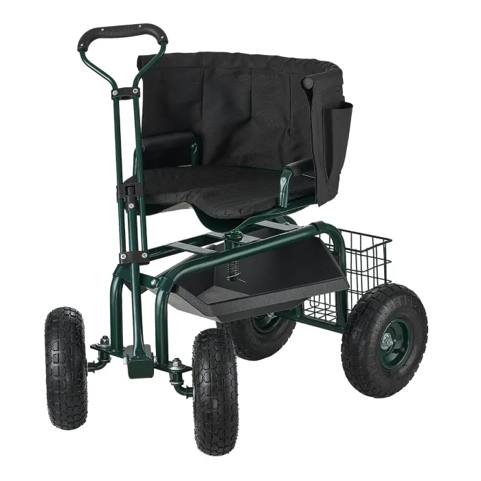 Подвижна кутия за инструменти: С подвижна кутия за инструменти и телена кошница, този градински скутер за външна употреба държи вашите градински инструменти, ръкавици, лейки и други под ръка. Вградената стойка за съхранение поддържа предметите организирани за ефективни градинарски задачи.