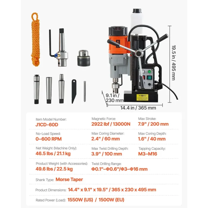 Магнитна бормашина VEVOR J1CD-60D/ 1500W