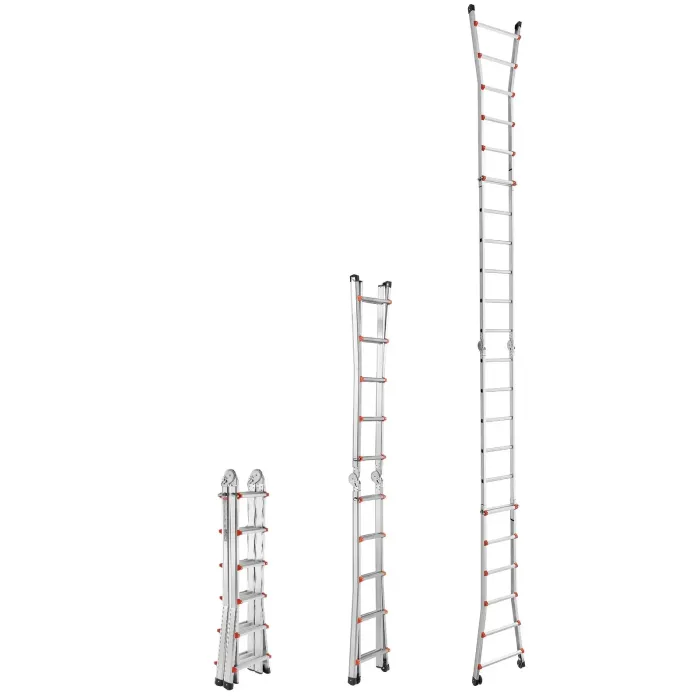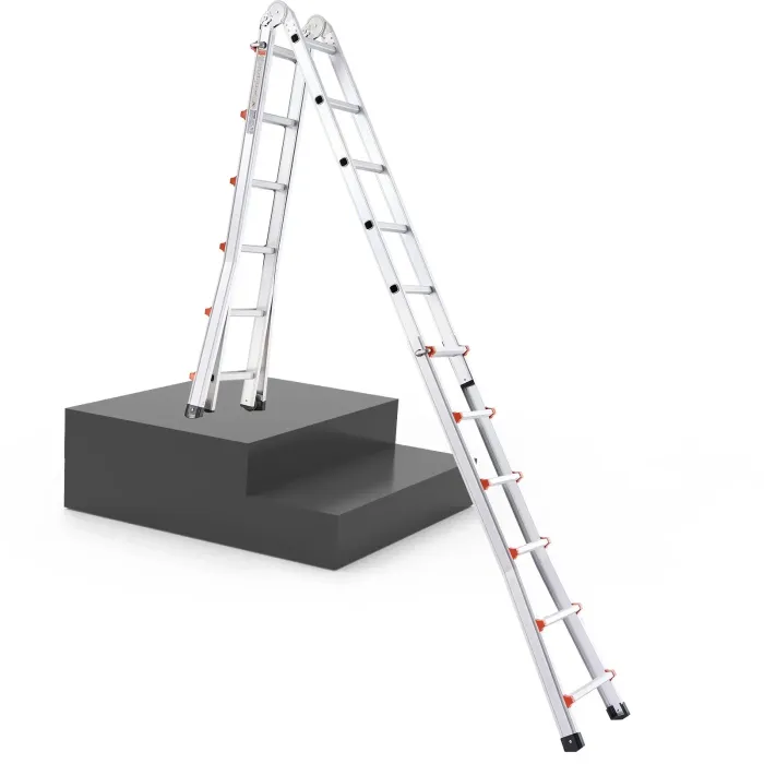 Универсална стълба: Тази телескопична рамкова стълба се адаптира към различни нужди, като лесно се превключва между различни конфигурации. С разтегателни крака, достигащи до 180°, и максимална височина от 6230 мм, тя е идеална за поддръжка или почистване на тавани.