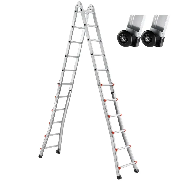 Основата е с двойни колела, което улеснява транспортирането с една ръка, решавайки проблема с повдигането на традиционните стълби и правейки преживяването ви по-приятно. Проектирана с А-образна конструкция за подобрена стабилност, тази разтегателна стълба поддържа товароносимост до 150 кг. Не изисква сглобяване, което позволява незабавна употреба, а неплъзгащият се дизайн осигурява спокойствие при работа на височина.