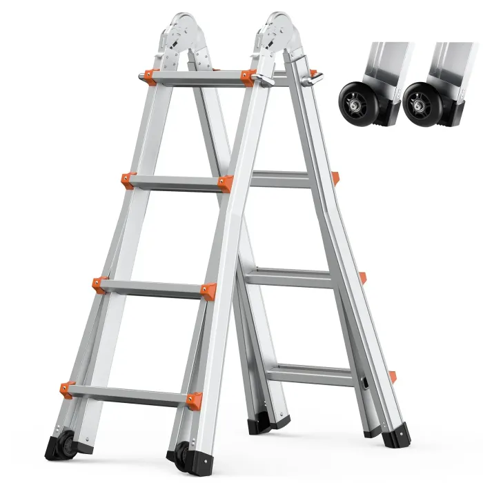 Основата е с двойни колела, което улеснява транспортирането с една ръка, решавайки проблема с повдигането на традиционните стълби и правейки преживяването ви по-приятно. Проектирана с А-образна конструкция за подобрена стабилност, тази разтегателна стълба поддържа товароносимост до 150 кг. Не изисква сглобяване, което позволява незабавна употреба, а неплъзгащият се дизайн осигурява спокойствие при работа на височина.