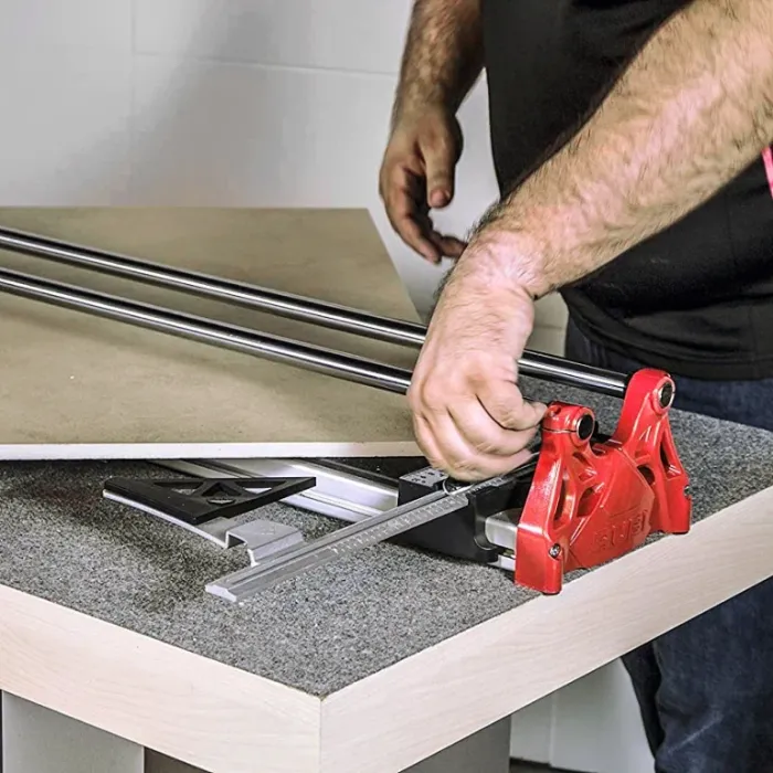 Инструментът осигурява рязане с дължина до 1200 мм, а диаметърът на режещата ролка е 8 мм. Страничният ограничител се използва при повтарящо се изрязване на еднакви части. Стоманените водачи са полирани и хромирани, обработени с антикорозионно съединение. Ръчната машина е предназначена за право и диагонално рязане на керамични плочки с дебелина 5-15 мм.