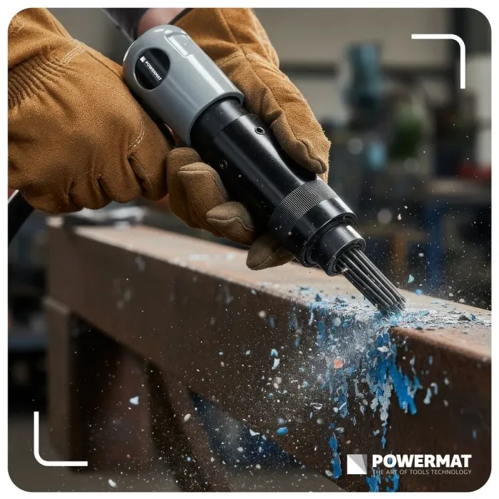 Този пневматичен иглен чук върши трудната работа вместо вас. Високочестотният му удар ускорява премахването на ръжда, котлен камък и стари заварки, което ви позволява да завършите работата по-бързо. Ще постигнете ниво на скорост, което е просто невъзможно с ръчни инструменти.