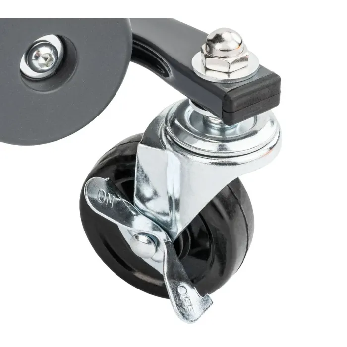Седалката е оборудвана с транспортни колела със спирачки, които позволяват плавно движение по работното място и бързо обездвижване по време на работа.
