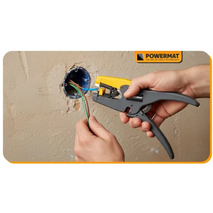 Механизмът автоматично регулира налягането спрямо диаметъра на проводника, осигурявайки бързо и прецизно оголване на изолацията без риск от повреда на проводника.