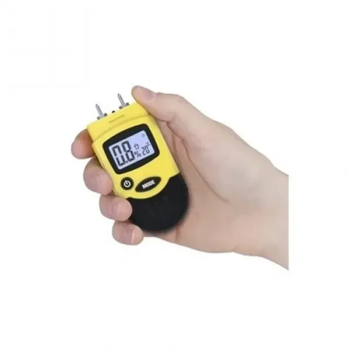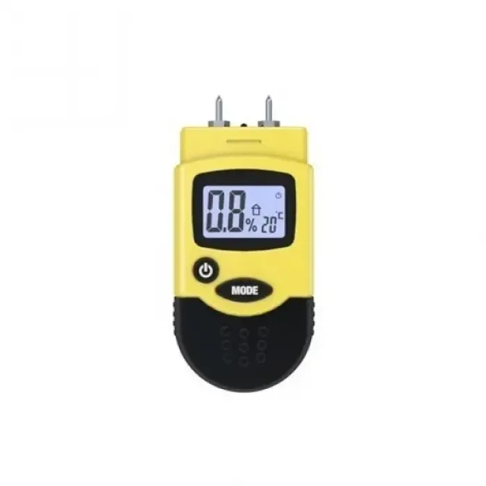 Освен влагата на материала този уред определя и околната температура, която може да бъде отчетена по желание в ° C или ° F. Има защитна капачка, дисплей за температурата и превключвател за избор на режим. Благодарение на автоматичното изключване батерията има дълъг живот.