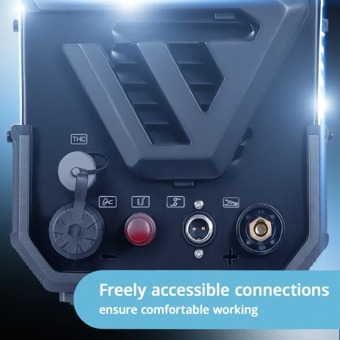 Лек и компактен дизайн - С тегло само 9,0 кг и размери 440 x 200 x 350 мм, устройството е лесно за транспортиране и идеално за рязане навсякъде. Иновативните IGBT транзистори спестяват място и тегло в сравнение със старата MOSFET технология.