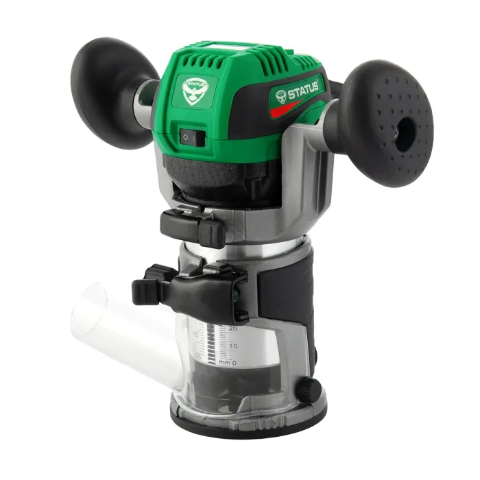 Има подвижен капак за удобна смяна на четки. Блокиране на шпиндела за бърза смяна на фрезата. Превключвател с функция заключване. Допълнително може да се използва с накланяща или потапяща се база. Включен конектор за прахоулавяне. Челната фреза е с плавен старт, електронна стабилизация на оборотите с LCD дисплей. Поддържа постоянна скорост при натоварване. Основа на корпуса на двигателя от алуминиева сплав. Точна настройка на дълбочината на фрезоване.
