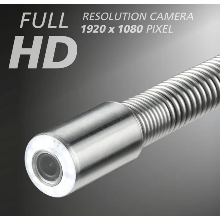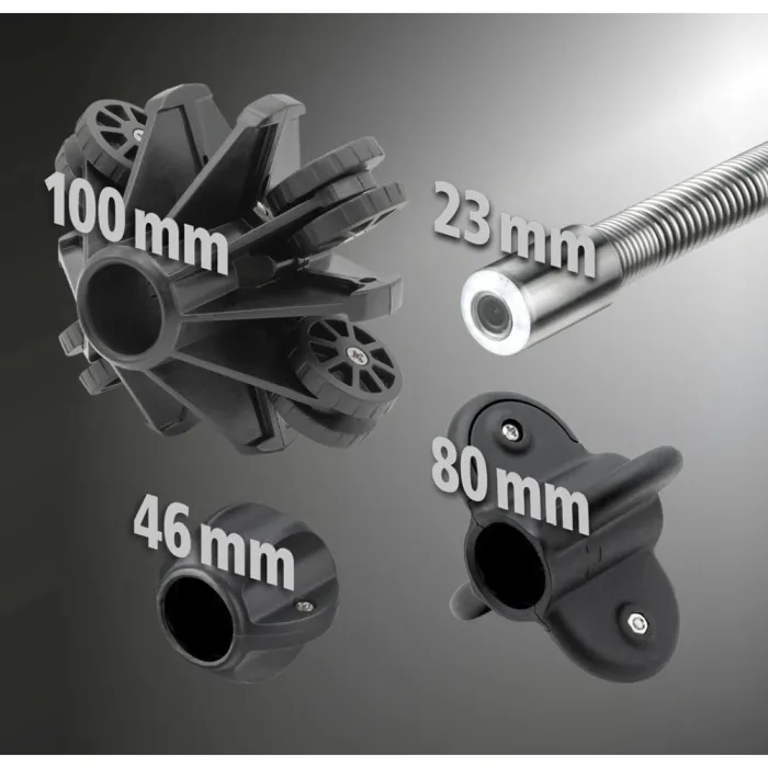 Камерата с висока резолюция позволява детайлно изображение и видеозапис, а ясното цифрово увеличение позволява прецизно заснемане на детайлите. 15 мощни светодиода осигуряват перфектно осветление, а AutoLevelView автоматично подравнява изображението хоризонтално. Два адаптера за плъзгащи се части (80/46 мм) улесняват преминаването през връзките, докато центриращият адаптер за плъзгащи се части (100 мм) центрира камерата за оптимално подравняване и видимост във всички посоки. Тази професионална система за инспекция на тръби е подходяща за тръби с диаметър от DN 50 във водопроводни инсталации, откриване на течове и строителни услуги. 30-метровият кабел PushFlex покрива всички битови приложения. Подсиленият със стъклени влакна кабел за натискане предлага оптимална комбинация от твърдост при поставяне и гъвкавост за разклонени тръбни системи. Устройството разполага и с функция за текстови коментари чрез клавиатура и функция за аудио запис, която позволява видео коментари по време на запис. Изображения, видео и аудио записи могат да се запазват на SD картата с памет за целите на документирането.
