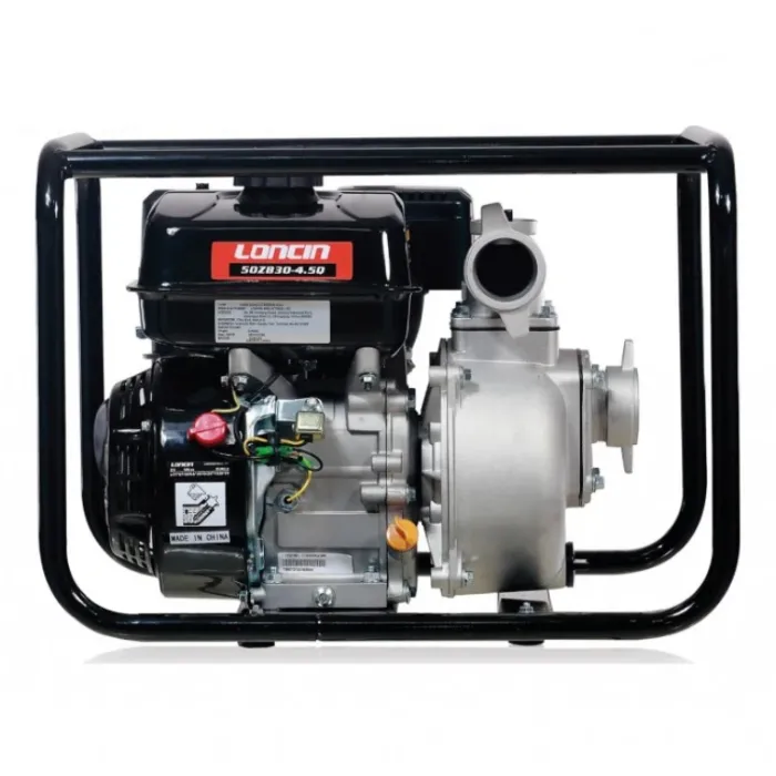 Моторната помпа има максимална дълбочина на засмукване 8 м. Бензиновата водна помпа LONCIN LC 50 е с присъединителни размери 2", мощност 5.5 к.с. и максимален напор 30 м. Оборудвана е с високоефективен екологичен двигател LONCIN G200F с въздушно охлаждане, осигуряващ дебит от 30 м³/ч. Самозасмукващата помпа има алуминиева глава, която я прави лека и удобна за пренасяне. Снабдена е със усилена стоманена рамка и антивибрационни тампони. Капацитетът на резервоара за гориво е 3.5 л.