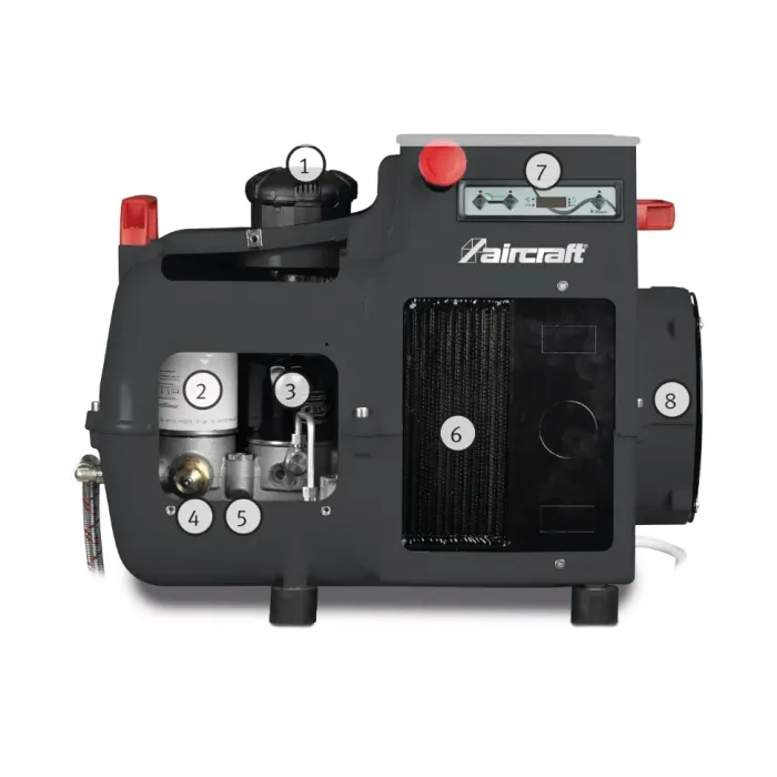 Компресора е с електронно управление K-Tronic за надеждност и ефективност. Има настройка на налягането за включване и изключване. Проверка на посоката на въртене. Следене на температурата на маслото. Показване на интервала за поддръжка. Ефективен и интегриран дизайн на компресорния агрегат.