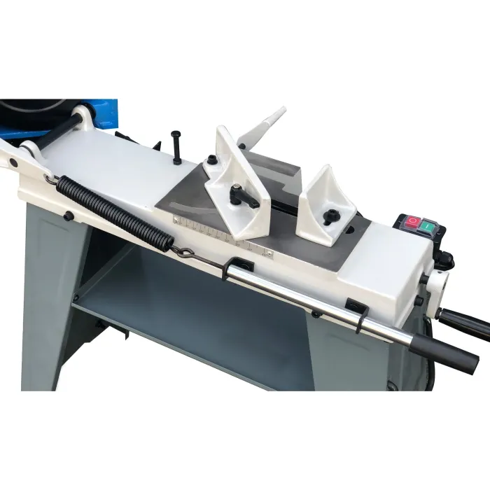 Дизайнът на рамото позволява хоризонталният резач да се превърне във вертикален с маса. Това важи не само за рязане на метали, но може да се използва и като вертикален резач-прободен трион за дърводелски работи.