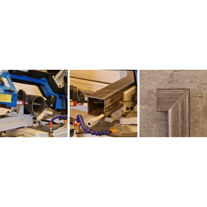 Прецизността и здравината са начело на лентовите триони с характеристики на опън на профили, C-профили и плътни материали и др. Мощният двигател е допълнително оборудван с термични предпазители от ново поколение. Лентовия трион, използван в ключарски, производствени и занаятчийски дейности. По-мощен еднофазен двигател, оборудван с допълнителни защити. Машината разполага и с нов, ново поколение хидравличен цилиндър без нужда от поддръжка.
