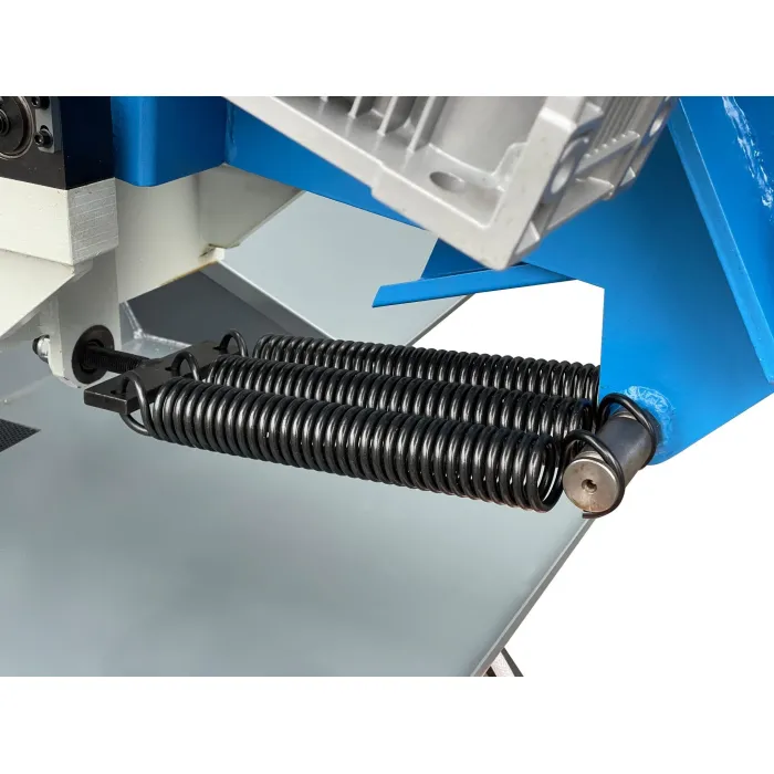 Масивната, стабилна и изпипана конструкция и рамото, изработено от масивни заварени стоманени листове, осигуряват на машината много висока твърдост и стабилност по време на рязане, което гарантира прецизно рязане и продължителна безпроблемна работа. Конструкцията и използването на режеща лента с ширина 34 мм позволява пълното изпълнение на многосерийни разрези както на профили, така и на пълни детайли.