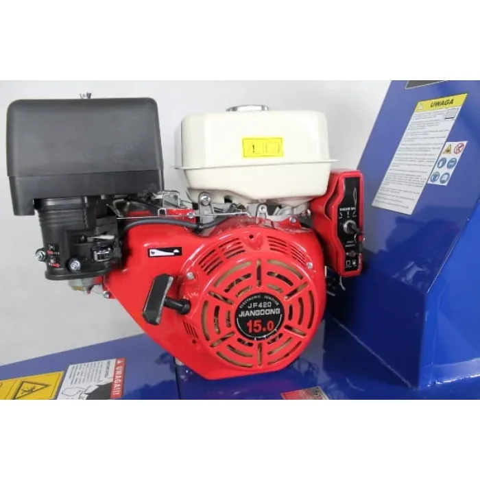 Машината може да бъде оборудвана с батерия за електрическо стартиране. Мощна и надеждна дробилка за клои, която комбинира дискова дробилка и чукова мелница. Благодарение на това решение можем да надробяваме както клони с размер до 8 см , така и други малки, меки и рохкави материали (отпадъчна хартия, сено, иглички от дървета, листа). Машината използва режещ диск с два ножа от инструментална стомана за рязане на клони. Максималният диаметър на хвърлените клони е 8 см. За смилане на меки материали машината е оборудвана със система от бъркалки. На барабана има 24 бъркалки.