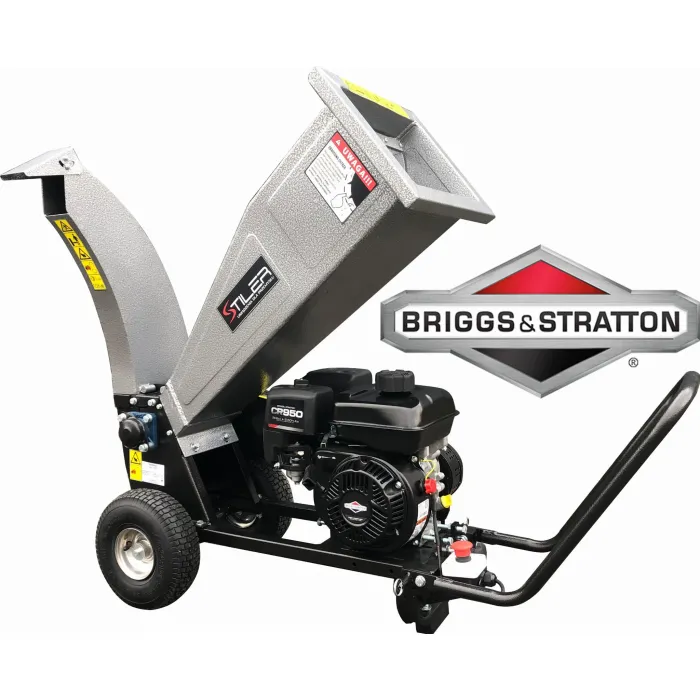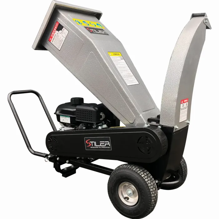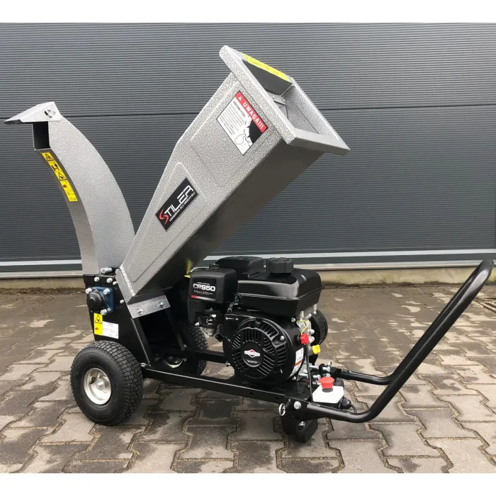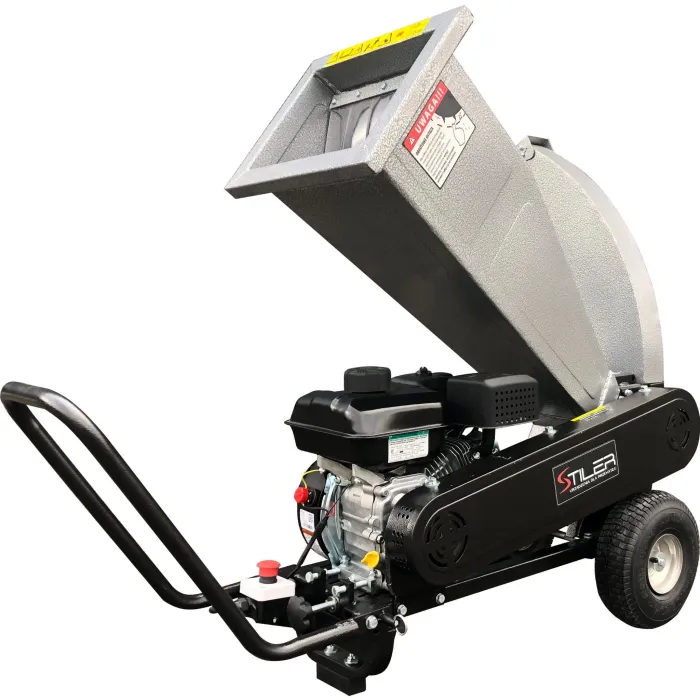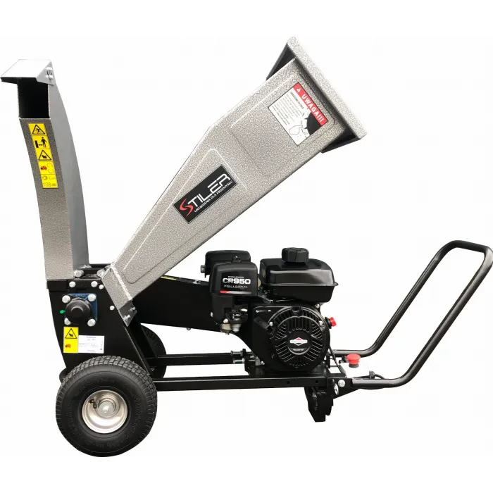 Мощната и здрава дробилка STILER е незаменим инструмент за много приложения във вашата градина. Лесно раздробява клони с диаметър до 60 мм , както и градински отпадъци, листа, кора от иглолистни дървета. Може да се използва и за раздробяване на други материали, като пластмаса и др. Режещият механизъм е въртящ се барабан с 2 режещи ножа, задвижван от 4-тактов двигател с вътрешно горене BRIGGS & STARTTON с обем 208 см3 и мощност 6,5 к.с., посредством два паралелно разположени задвижващи ремъка.