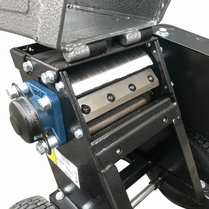 Машината е предназначена за раздробяване на клони с диаметър до 6 см. Благодарение на барабанния механизъм, дробилката сама поема материала и го раздробява.