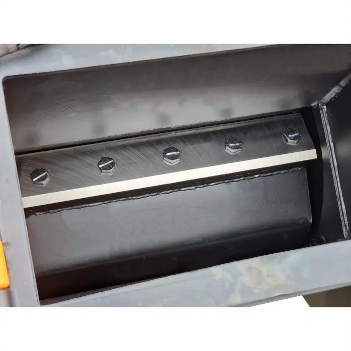 Остриетата са изработени от твърда инструментална стомана HARDOX тип 500. Машината има противонож , монтиран в корпуса на режещата камера. Сгъваемият бункер е оборудван с ограничителен изключвател, който предотвратява стартирането на дробилката по време на поддръжка.