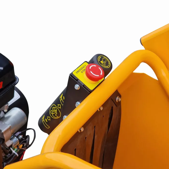 Бункерът за подаване е оборудван с авариен предпазен превключвател , който при натискане с ръка изключва захранването на двигателя.